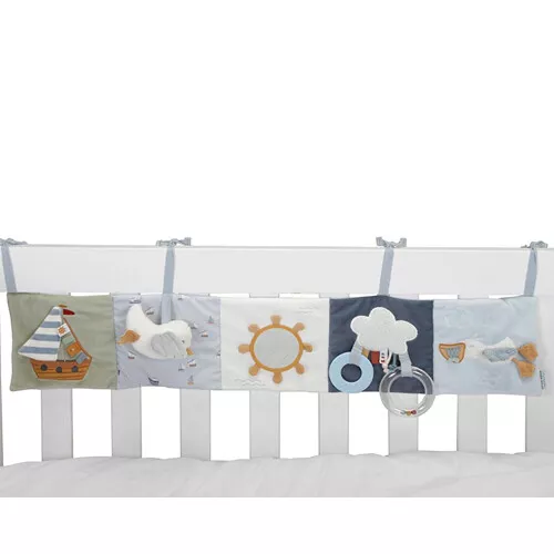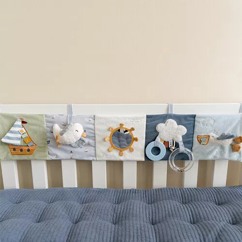 Baby’s vermaken zich thuis en onderweg met deze activiteitenboekje ‘Sailors Bay’ van het Nederlandse merk Little Dutch. Ontdek de verschillende materialen, het rammelende vogeltje, de bijtringen en het spiegeltje.