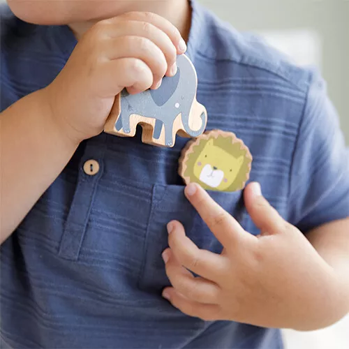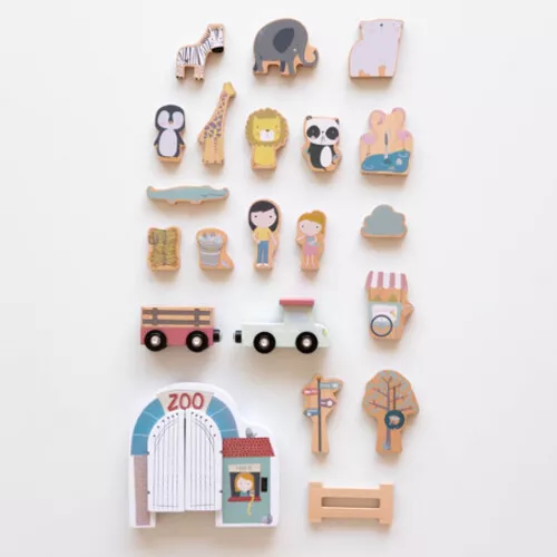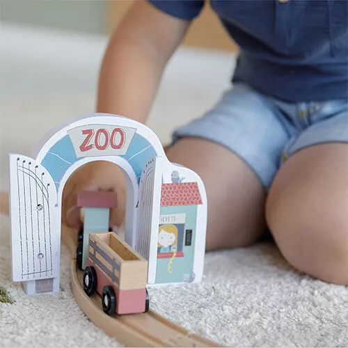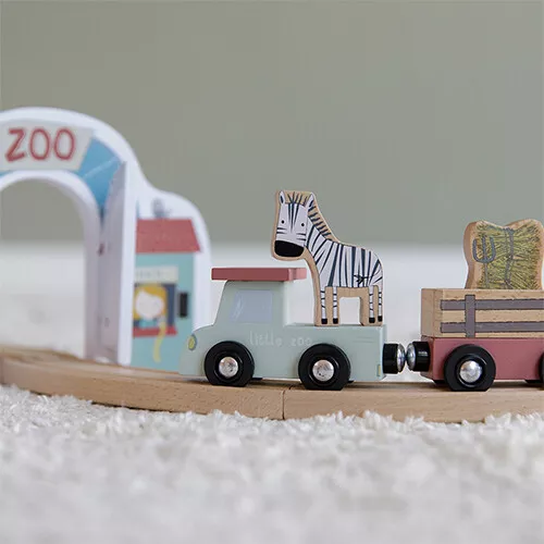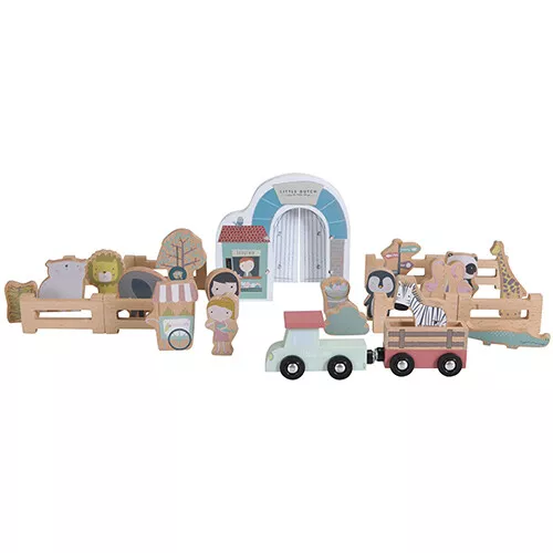 Creëer een echte beestenboel met deze houten dierentuinspeelset uit de Little Railway Collection van het Nederlandse merk Little Dutch.
