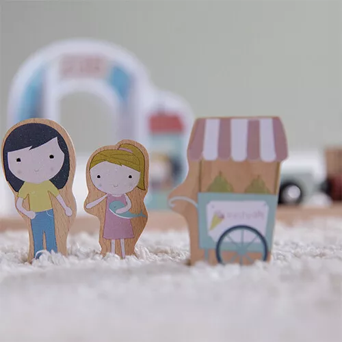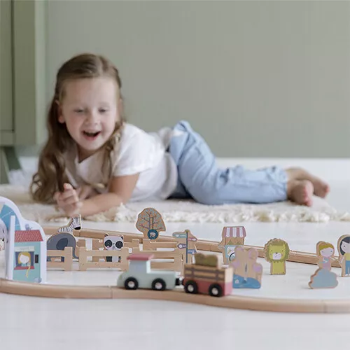 Om een eigen stad te creëren kan deze speelgoedset gecombineerd worden met de treinbaan XXL starterkit en andere uitbreidingssets uit de Little Railway Collection van Little Dutch.