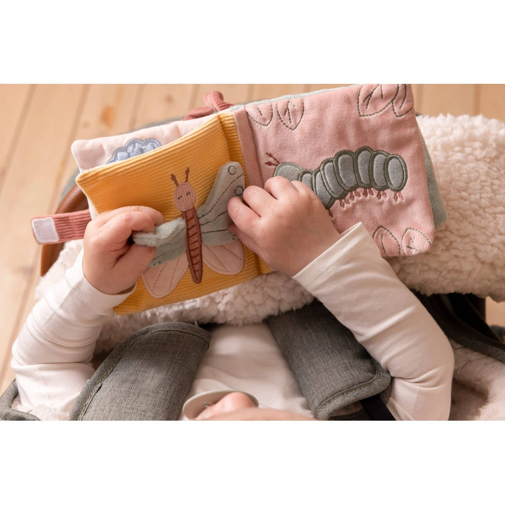 Dit schattige Little Dutch Flowers & Butterflies-buggyboekje bevat leuke labels, kreukeltexturen en een bloem met een belletje erin.