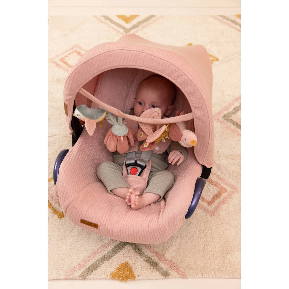 Je kindje krijgt een zintuiglijke ervaring met deze kleurrijke Little Dutch Flowers & Butterflies wagenspanner. De spanner bevat vier verschillende karakters om naar te kijken en mee te spelen. Aan de hand van dit speelgoed wordt de ontwikkeling van de hand-oogcoördinatie van jouw baby gestimuleerd. Bevestig de wagenspanner aan een autostoeltje of kinderwagen. Vlinder Lily, vogeltje Olivia en mus Abby entertainen je kleintje graag onderweg.