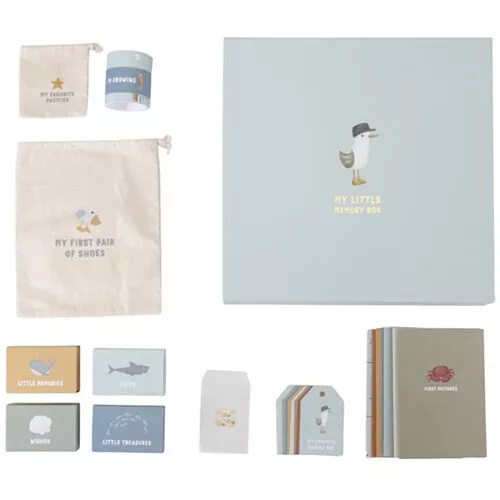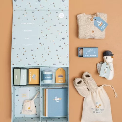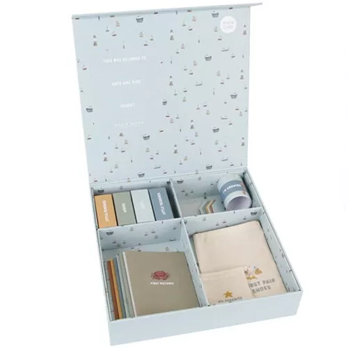Ongemerkt glijdt de tijd voorbij. In deze geboortedoos ‘Memorybox – Sailors Bay’ van het Nederlandse merk Little Dutch kunnen herinneringen en babyschatten verzameld worden.