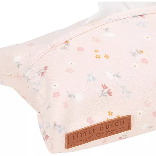 Een katoenen hoes ‘Little Pink Flowers’ van het Nederlandse merk Little Dutch speciaal voor het opbergen van natte babydoekjes. Met deze praktische babydoekjeshoes met romantisch bloemenpatroon is de plastic verpakking uit het zicht.