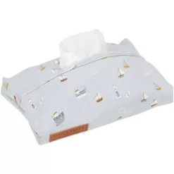 Een katoenen hoes ‘Sailors Bay – Blue’ van het Nederlandse merk Little Dutch speciaal voor het opbergen van natte babydoekjes. Met deze praktische babydoekjeshoes met bootjes is de plastic verpakking uit het zicht.