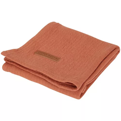 Een grote hydrofiele inbakerdoek ‘Swaddle Pure Rust’ van het Nederlandse merk Little Dutch. De multifunctionele hydrofiele tetradoek neemt gemakkelijk vocht op en is groot genoeg om de baby te kunnen inbakeren.