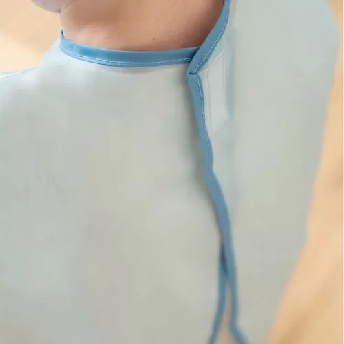 Het kinderschort met nautisch dessin heeft een handige klittebandsluiting aan de achterkant en is flexibel, waardoor kinderen vrij kunnen bewegen. De mouwen hebben daarbij elastische bandjes rond de polsen, dus vloeistof kan niet naar binnen druipen.