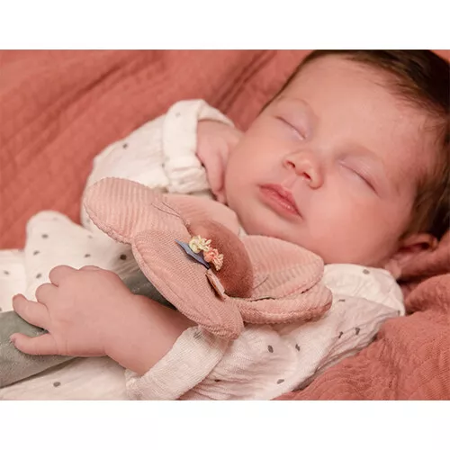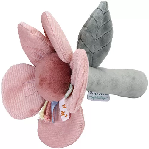 Een knuffelbloem met rammelaar uit de collectie ‘Flowers & Butterflies’ van het Nederlandse merk Little Dutch.
