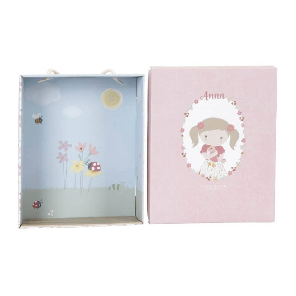 Dit is de lieve Anna. Deze pluchen Little Dutch knuffelpop in haar schattige rokje kan niet wachten om geknuffeld te worden. Ze vindt het heerlijk om rond te huppelen in tuinen vol bloemen en vlinders. Samen met haar vogeltje wordt Anna je nieuwe beste vriendin. Ze zal er altijd voor je zijn als je wilt spelen of een dikke knuffel nodig hebt. Wat wordt jullie eerste uitje samen? Misschien een wandeling door de tuin met de bijpassende houten poppenwagen!?