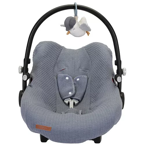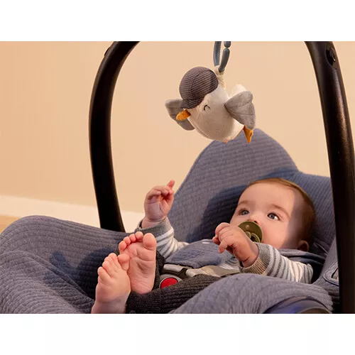 Het activiteitenknuffeltje is met de kunststof ring eenvoudig te bevestigen aan een autostoeltje, box of kinderwagen.