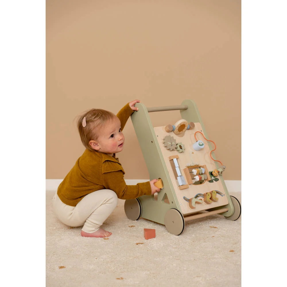 Loop, speel en leer met deze Little Goose loopwagen van Little Dutch! Deze houten activiteiten loopwagen biedt verschillende uitdagende activiteiten.