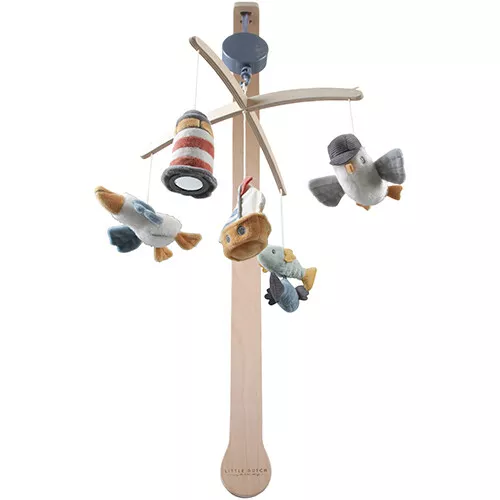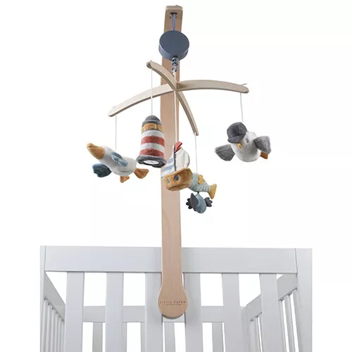 Een muziekmobiel uit de collectie ‘Flowers & Butterflies’ van het Nederlandse merk Little Dutch. De babymobiel met vriendelijke lentediertjes op een houten frame draait een rustgevend liedje om de kleine te plezieren.