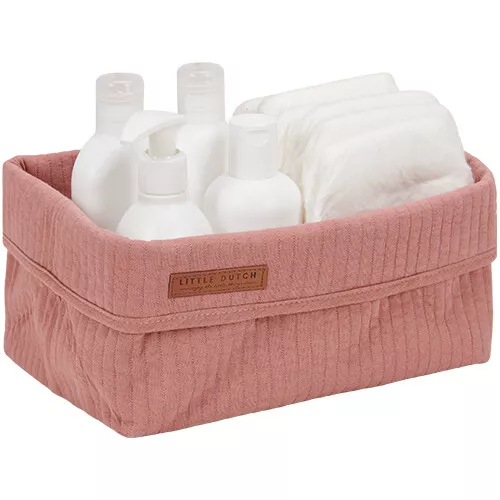 Een decoratief commodemandje ‘Pure – Pink Blush’ van het Nederlandse merk Little Dutch, voor een opgeruimde kinderkamer. Gebruik het jersey katoenen opbergmandje voor het opbergen van klein speelgoed of losse spulletjes voor de verzorging van de baby.