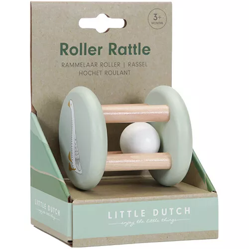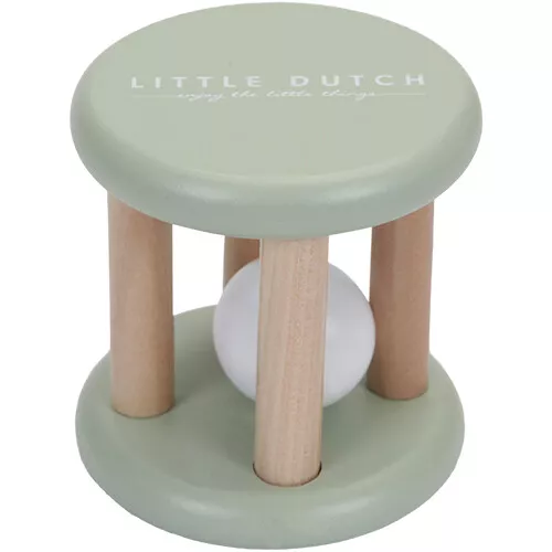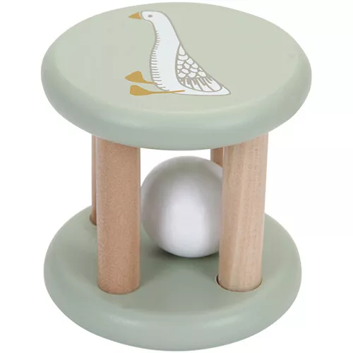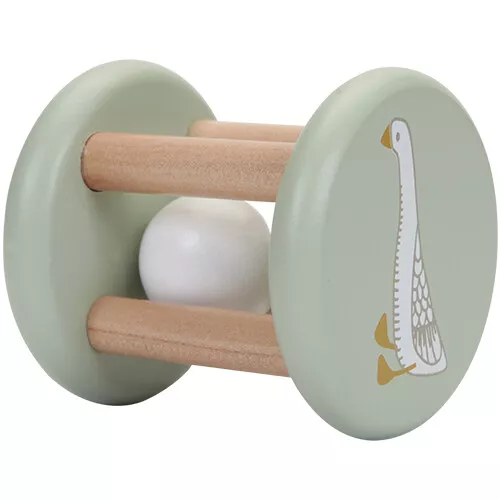 De houten rammelaar rolt en rolt en maakt daarbij een rammelend geluid. De rammelaar bevordert de hand-oog coördinatie en is speciaal ontworpen om door kleine kinderhandjes te worden vastgegrepen.