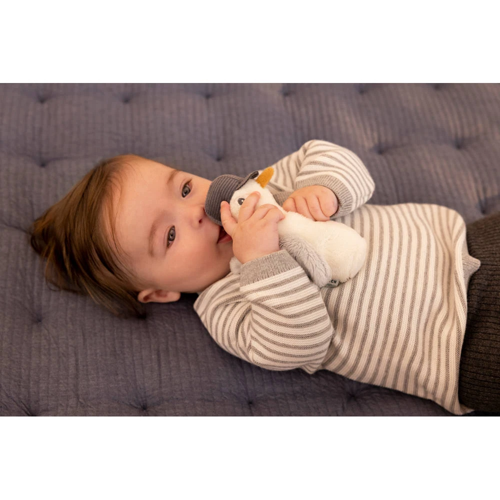 Als je kindje in deze schattige Little Dutch Sailor’s Bay knijprammelaar in de vorm van een meeuw knijpt hoor je een grappig geluidje!