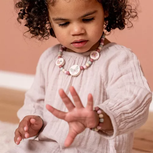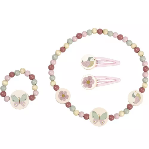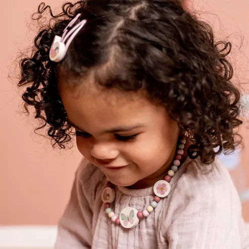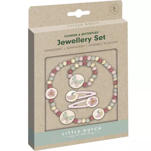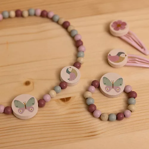 Met dit ‘Houten juwelensetje’ uit de serie Flowers & Butterflies van het Nederlandse merk Little Dutch kunnen kleine prinsessen zich opdoffen. Het houten setje heeft een ketting, armband en twee haarclipjes met een dieren en bloemen. Leuk om de dagelijkse outfit mee op te fleuren, maar ook leuk voor verkleedpartijtjes.