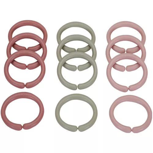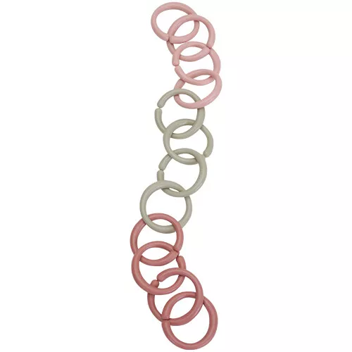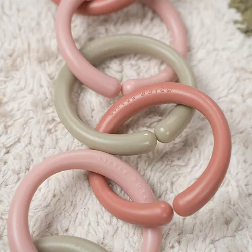 Hang speelgoed op aan de babygym of in de box met deze set van 12 schakelbare speelringen ‘Little Loops – Pink’ van het Nederlandse merk Little Dutch.