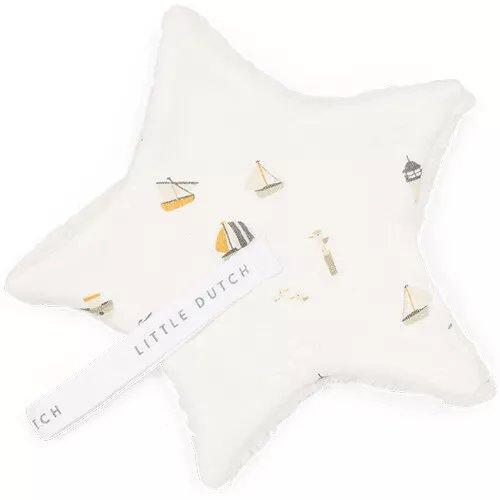 Nooit meer de speen zoeken met dit stervormig speendoekje ‘Sailors Bay – White’ van het Nederlandse merk Little Dutch. Het knuffeldoekje met maritiem dessin voelt heerlijk aan en biedt troost. De fopspeen kan bevestigd worden aan de lus.