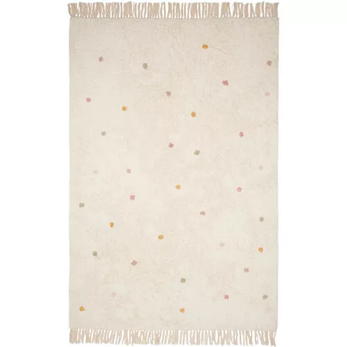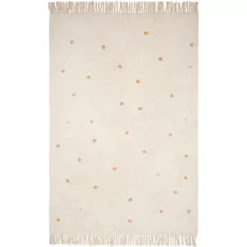 Een rechthoekig vloerkleed ‘Dot Mixed Blue’ van het Nederlandse merk Little Dutch. Het kinderkleed straalt met de gebroken witte kleur en subtiele stippendessin rust uit. Het kleed heeft aan beide korte zijden speelse kwastjes.