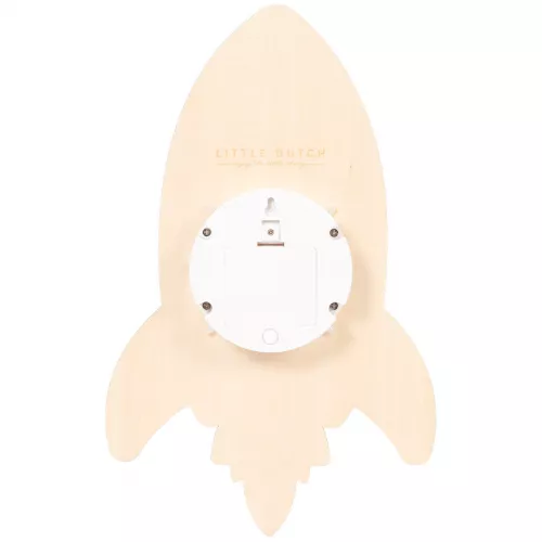 Droom zachtjes weg met dit stoere, houten wandlampje in de vorm van een raket van het Nederlandse merk Little Dutch. Tik één keer op de lamp voor helder licht en tik nog een keer voor zachter licht wanneer het bedtijd is.