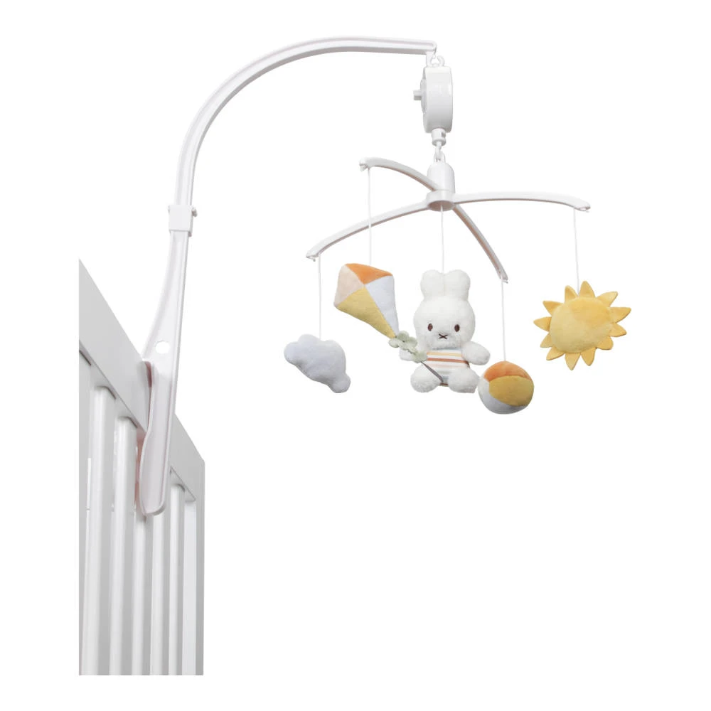 - Aan de muziekmobiel hangen Nijntje, de zon, een wolk, een vlieger en een strandbal uit de Vintage Sunny Stripes-collectie.